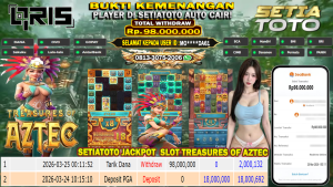 BUKTI KEMENANGAN 25 MARET 2026 DI GAME Treasures of Aztec WD 98,000,000 JUTA