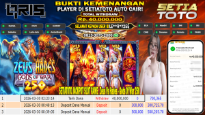 BUKTI KEMENANGAN 30 MARET 2026 DI GAME Zeus Vs Hades – Gods Of War 250 WD 40,000,000 JUTA