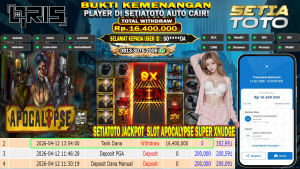 BUKTI KEMENANGAN 12 APRIL 2026 DI GAME Apocalypse Super XNudge WD 16,400,000 JUTA