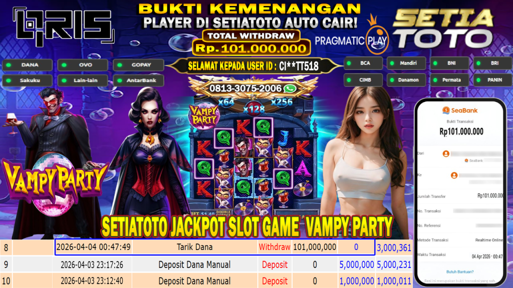 Bandar togel SETIATOTO merupakan bandar togel dan slot online yang membayar semua kemenangan member hingga lunas. Setiap pembayaran pada situs kami dilakukan dengan cara transfer ke rekening tujuan yang sudah di daftarkan pada situs togel online kami, Pembayaran hanya dapat di proses jika rekening yang di daftarkan telah valid dan dapat di transfer. Semua kemenangan member yang mendapatkan hadiah jackpot terbesar akan kami posting agar semua pemain dapat melihat bandar situs terpercaya SETIATOTO ini membayar semua kemenangan member hingga lunas. Setiap postingan yang kami posting akan kami lakukan sensor pada nomor rekening 4 digit dan nama rekening untuk menjaga privasi dan kerahasiaan member. Postingan Jackpot yang kami posting agar member atau pemain yang belum pernah bermain bisa melihat bandar togel Bukan Kaleng Kaleng Seperti SETIATOTO ini, Semua postingan jackpot yang kami posting dapat di lihat data keasliannya melalui nomor reff yang di tunjukan pada bank atau mbanking saat kita melakukan transfer.