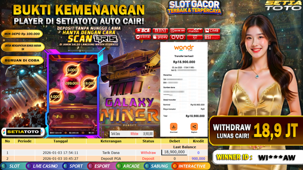 BUKTI KEMENANGAN 03 JANUARY 2026 DI GAME Galaxy Miner WD 18,9 JUTA