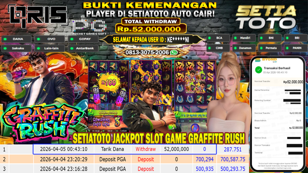 Bandar togel SETIATOTO merupakan bandar togel dan slot online yang membayar semua kemenangan member hingga lunas. Setiap pembayaran pada situs kami dilakukan dengan cara transfer ke rekening tujuan yang sudah di daftarkan pada situs togel online kami, Pembayaran hanya dapat di proses jika rekening yang di daftarkan telah valid dan dapat di transfer. Semua kemenangan member yang mendapatkan hadiah jackpot terbesar akan kami posting agar semua pemain dapat melihat bandar situs terpercaya SETIATOTO ini membayar semua kemenangan member hingga lunas. Setiap postingan yang kami posting akan kami lakukan sensor pada nomor rekening 4 digit dan nama rekening untuk menjaga privasi dan kerahasiaan member. Postingan Jackpot yang kami posting agar member atau pemain yang belum pernah bermain bisa melihat bandar togel Bukan Kaleng Kaleng Seperti SETIATOTO ini, Semua postingan jackpot yang kami posting dapat di lihat data keasliannya melalui nomor reff yang di tunjukan pada bank atau mbanking saat kita melakukan transfer.