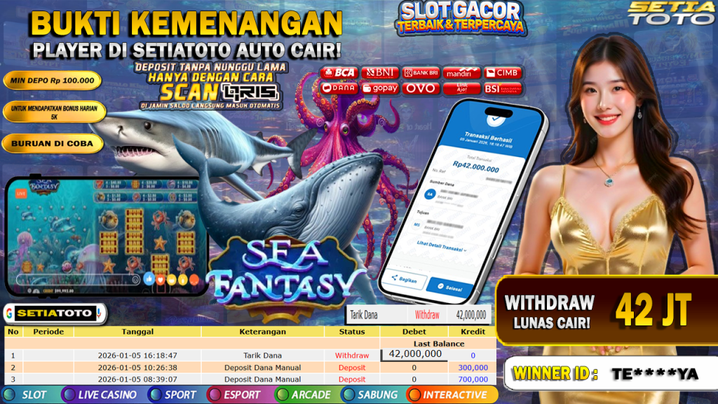 BUKTI KEMENANGAN 05 JANUARI 2026 DI GAME Sea Fantasy WD 42 JUTA
