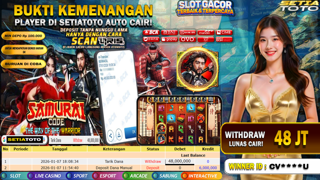 BUKTI KEMENANGAN 07 JANUARI 2026 DI GAME Samurai Code WD 48 JUTA