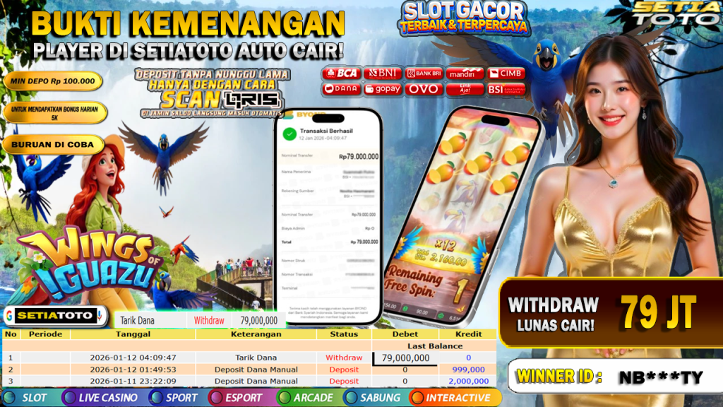 Bandar togel SETIATOTO merupakan bandar togel dan slot online yang membayar semua kemenangan member hingga lunas. Setiap pembayaran pada situs kami dilakukan dengan cara transfer ke rekening tujuan yang sudah di daftarkan pada situs togel online kami, Pembayaran hanya dapat di proses jika rekening yang di daftarkan telah valid dan dapat di transfer.  Semua kemenangan member yang mendapatkan hadiah jackpot terbesar akan kami posting agar semua pemain dapat melihat bandar situs terpercaya SETIATOTO ini membayar semua kemenangan member hingga lunas. Setiap postingan yang kami posting akan kami lakukan sensor pada nomor rekening 4 digit dan nama rekening untuk menjaga privasi dan kerahasiaan member. Postingan Jackpot yang kami posting agar member atau pemain yang belum pernah bermain bisa melihat bandar togel Bukan Kaleng Kaleng Seperti SETIATOTO ini, Semua postingan jackpot yang kami posting dapat di lihat data keasliannya melalui nomor reff yang di tunjukan pada bank atau mbanking saat kita melakukan transfer.