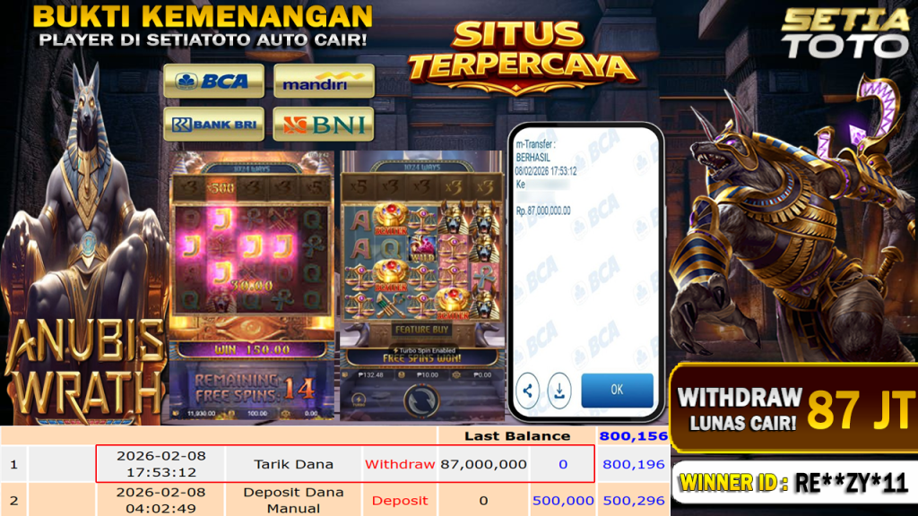Bandar togel SETIATOTO merupakan bandar togel dan slot online yang membayar semua kemenangan member hingga lunas. Setiap pembayaran pada situs kami dilakukan dengan cara transfer ke rekening tujuan yang sudah di daftarkan pada situs togel online kami, Pembayaran hanya dapat di proses jika rekening yang di daftarkan telah valid dan dapat di transfer. Semua kemenangan member yang mendapatkan hadiah jackpot terbesar akan kami posting agar semua pemain dapat melihat bandar situs terpercaya SETIATOTO ini membayar semua kemenangan member hingga lunas. Setiap postingan yang kami posting akan kami lakukan sensor pada nomor rekening 4 digit dan nama rekening untuk menjaga privasi dan kerahasiaan member. Postingan Jackpot yang kami posting agar member atau pemain yang belum pernah bermain bisa melihat bandar togel Bukan Kaleng Kaleng Seperti SETIATOTO ini, Semua postingan jackpot yang kami posting dapat di lihat data keasliannya melalui nomor reff yang di tunjukan pada bank atau mbanking saat kita melakukan transfer