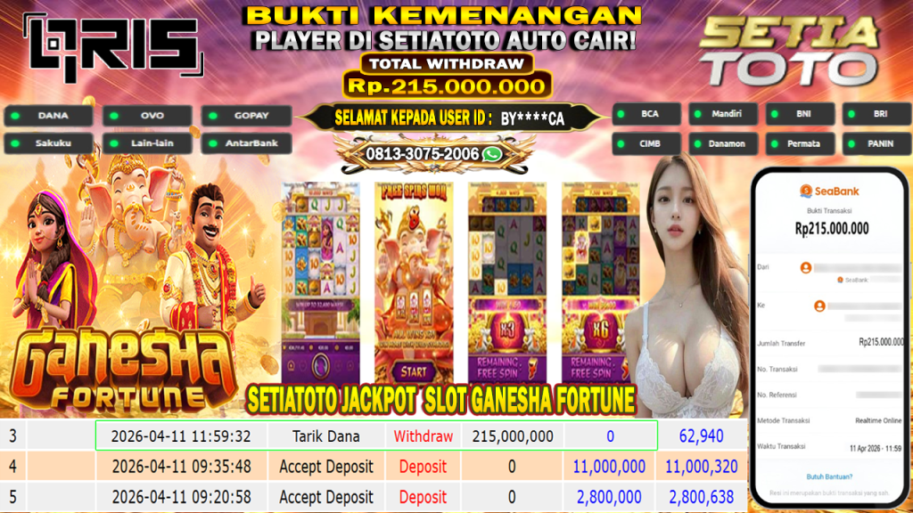 Bandar togel SETIATOTO merupakan bandar togel dan slot online yang membayar semua kemenangan member hingga lunas. Setiap pembayaran pada situs kami dilakukan dengan cara transfer ke rekening tujuan yang sudah di daftarkan pada situs togel online kami, Pembayaran hanya dapat di proses jika rekening yang di daftarkan telah valid dan dapat di transfer. Semua kemenangan member yang mendapatkan hadiah jackpot terbesar akan kami posting agar semua pemain dapat melihat bandar situs terpercaya SETIATOTO ini membayar semua kemenangan member hingga lunas. Setiap postingan yang kami posting akan kami lakukan sensor pada nomor rekening 4 digit dan nama rekening untuk menjaga privasi dan kerahasiaan member. Postingan Jackpot yang kami posting agar member atau pemain yang belum pernah bermain bisa melihat bandar togel Bukan Kaleng Kaleng Seperti SETIATOTO ini, Semua postingan jackpot yang kami posting dapat di lihat data keasliannya melalui nomor reff yang di tunjukan pada bank atau mbanking saat kita melakukan transfer.