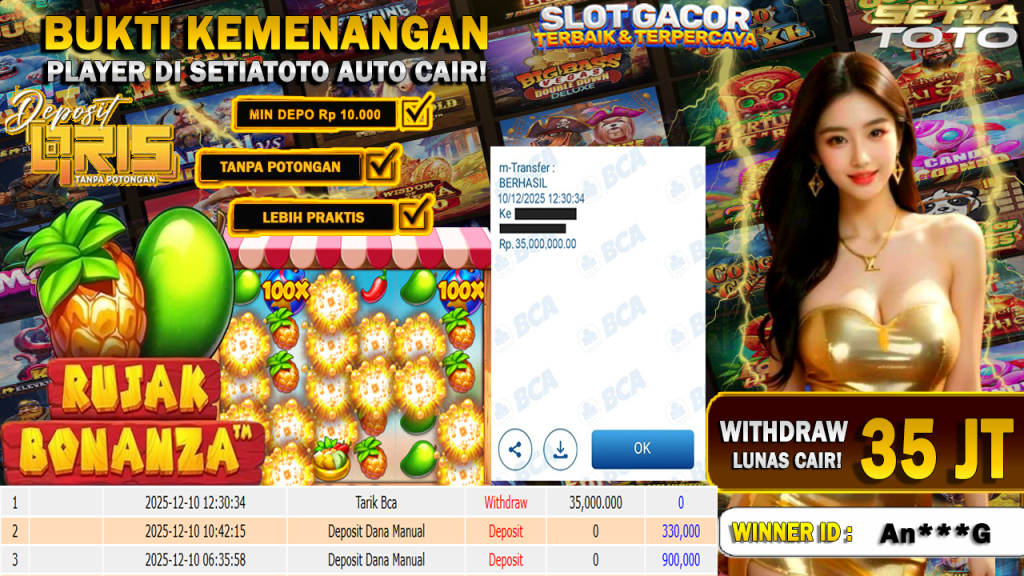 BUKTI KEMENANGAN 10 DESEMBER 2025 DI GAME Rujak Bonanza WD 35 JUTA