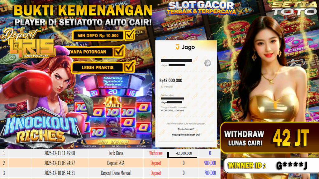 BUKTI KEMENANGAN 11 DESEMBER 2025 DI GAME Knockout Riches WD 42 JUTA