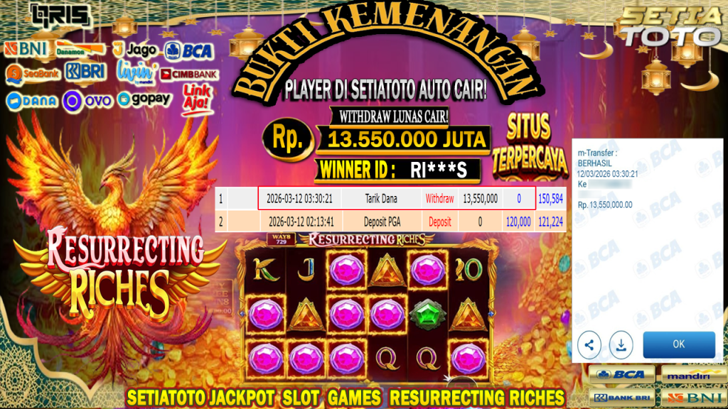 BUKTI KEMENANGAN 12 MARET 2026 DI GAME Resurrecting Riches WD 13,550,000 JUTA