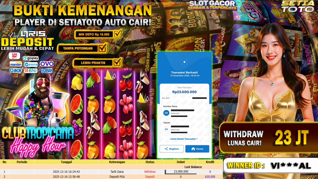 Bandar togel SETIATOTO merupakan bandar togel dan slot online yang membayar semua kemenangan member hingga lunas. Setiap pembayaran pada situs kami dilakukan dengan cara transfer ke rekening tujuan yang sudah di daftarkan pada situs togel online kami, Pembayaran hanya dapat di proses jika rekening yang di daftarkan telah valid dan dapat di transfer. Semua kemenangan member yang mendapatkan hadiah jackpot terbesar akan kami posting agar semua pemain dapat melihat bandar situs terpercaya SETIATOTO ini membayar semua kemenangan member hingga lunas. Setiap postingan yang kami posting akan kami lakukan sensor pada nomor rekening 4 digit dan nama rekening untuk menjaga privasi dan kerahasiaan member. Postingan Jackpot yang kami posting agar member atau pemain yang belum pernah bermain bisa melihat bandar togel Bukan Kaleng Kaleng Seperti SETIATOTO ini, Semua postingan jackpot yang kami posting dapat di lihat data keasliannya melalui nomor reff yang di tunjukan pada bank atau mbanking saat kita melakukan transfer.