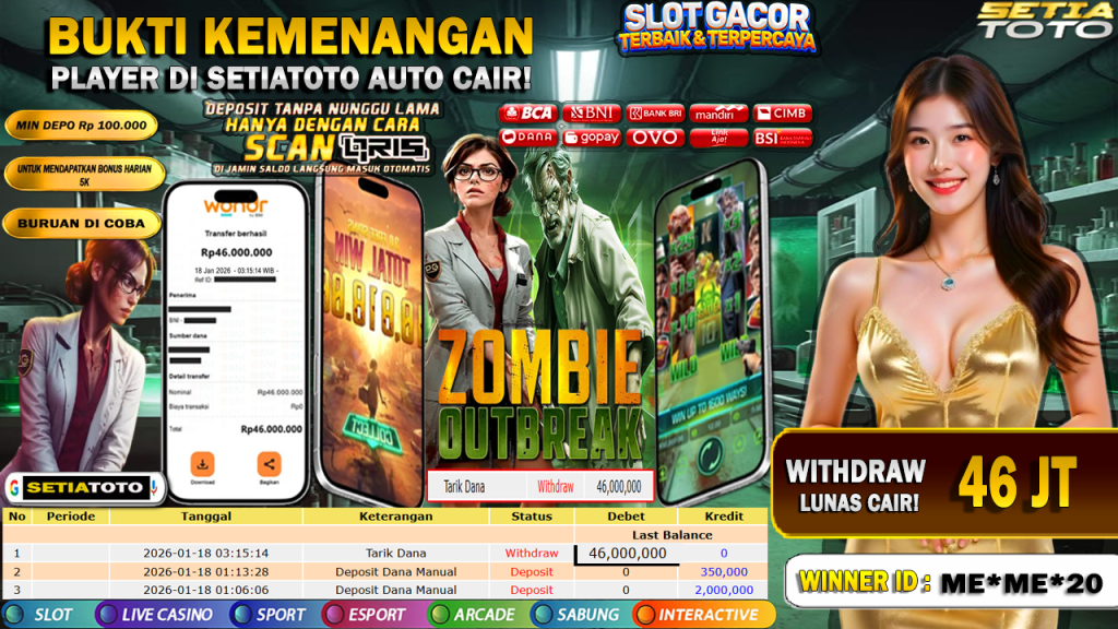 BUKTI KEMENANGAN 18 JANUARI 2026 DI GAME Zombie Outbreak WD 46,000,000 JUTA