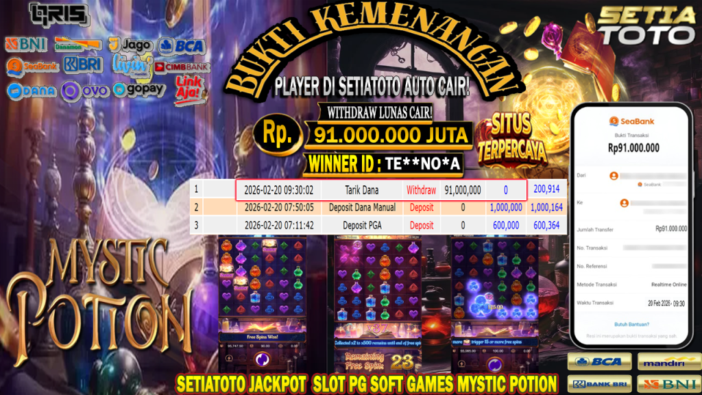Bandar togel SETIATOTO merupakan bandar togel dan slot online yang membayar semua kemenangan member hingga lunas. Setiap pembayaran pada situs kami dilakukan dengan cara transfer ke rekening tujuan yang sudah di daftarkan pada situs togel online kami, Pembayaran hanya dapat di proses jika rekening yang di daftarkan telah valid dan dapat di transfer. Semua kemenangan member yang mendapatkan hadiah jackpot terbesar akan kami posting agar semua pemain dapat melihat bandar situs terpercaya SETIATOTO ini membayar semua kemenangan member hingga lunas. Setiap postingan yang kami posting akan kami lakukan sensor pada nomor rekening 4 digit dan nama rekening untuk menjaga privasi dan kerahasiaan member. Postingan Jackpot yang kami posting agar member atau pemain yang belum pernah bermain bisa melihat bandar togel Bukan Kaleng Kaleng Seperti SETIATOTO ini, Semua postingan jackpot yang kami posting dapat di lihat data keasliannya melalui nomor reff yang di tunjukan pada bank atau mbanking saat kita melakukan transfer