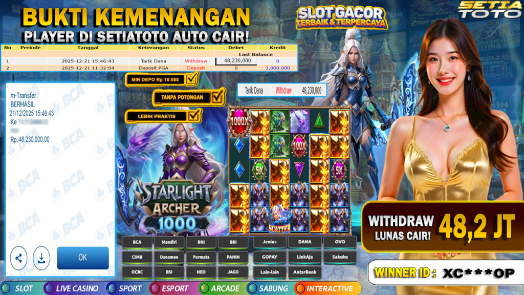 BUKTI KEMENANGAN 21 DESEMBER 2025 DI GAME Starlight Archer 1000 WD 48,2 JUTA