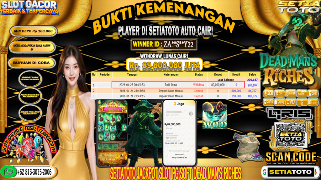 BUKTI KEMENANGAN 25 JANUARI 2026 DI GAME Dead Man’s Riches WD 89,000,000 JUTA