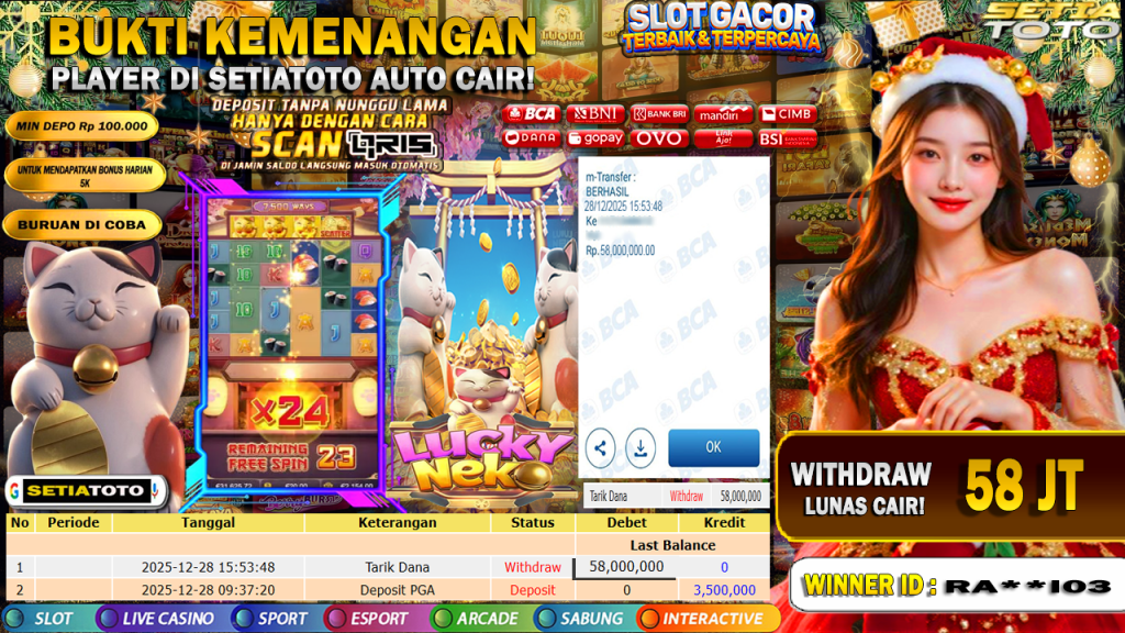 Bandar togel SETIATOTO merupakan bandar togel dan slot online yang membayar semua kemenangan member hingga lunas. Setiap pembayaran pada situs kami dilakukan dengan cara transfer ke rekening tujuan yang sudah di daftarkan pada situs togel online kami, Pembayaran hanya dapat di proses jika rekening yang di daftarkan telah valid dan dapat di transfer. Semua kemenangan member yang mendapatkan hadiah jackpot terbesar akan kami posting agar semua pemain dapat melihat bandar situs terpercaya SETIATOTO ini membayar semua kemenangan member hingga lunas. Setiap postingan yang kami posting akan kami lakukan sensor pada nomor rekening 4 digit dan nama rekening untuk menjaga privasi dan kerahasiaan member. Postingan Jackpot yang kami posting agar member atau pemain yang belum pernah bermain bisa melihat bandar togel Bukan Kaleng Kaleng Seperti SETIATOTO ini, Semua postingan jackpot yang kami posting dapat di lihat data keasliannya melalui nomor reff yang di tunjukan pada bank atau mbanking saat kita melakukan transfeBUKTI KEMENANGAN 27 DESEMBER 2025 DI GAME CHESTS OF CAI SHEN 2 WD 27 JUTA