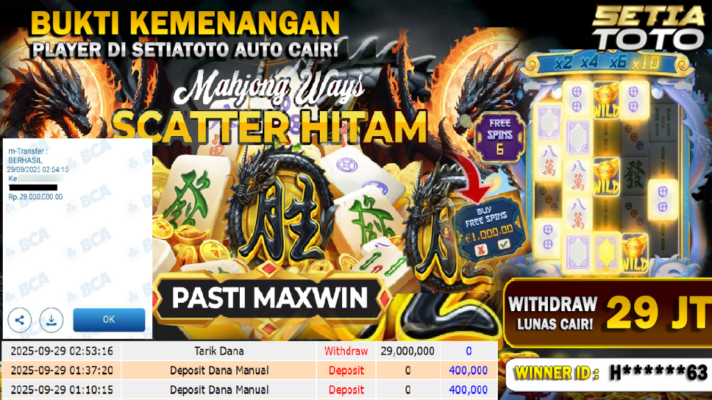 BUKTI KEMENANGAN 29 SEPTEMBER 2025 DI GAME MAHJONG WINS 3 – BLACK SCATTER ( PRAGMATIC PLAY ) WD 29 JUTA