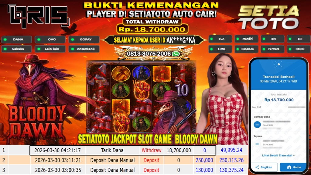 Bandar togel SETIATOTO merupakan bandar togel dan slot online yang membayar semua kemenangan member hingga lunas. Setiap pembayaran pada situs kami dilakukan dengan cara transfer ke rekening tujuan yang sudah di daftarkan pada situs togel online kami, Pembayaran hanya dapat di proses jika rekening yang di daftarkan telah valid dan dapat di transfer. Semua kemenangan member yang mendapatkan hadiah jackpot terbesar akan kami posting agar semua pemain dapat melihat bandar situs terpercaya SETIATOTO ini membayar semua kemenangan member hingga lunas. Setiap postingan yang kami posting akan kami lakukan sensor pada nomor rekening 4 digit dan nama rekening untuk menjaga privasi dan kerahasiaan member. Postingan Jackpot yang kami posting agar member atau pemain yang belum pernah bermain bisa melihat bandar togel Bukan Kaleng Kaleng Seperti SETIATOTO ini, Semua postingan jackpot yang kami posting dapat di lihat data keasliannya melalui nomor reff yang di tunjukan pada bank atau mbanking saat kita melakukan transfer.