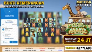 BUKTI KEMENANGAN 13 AGUSTUS 2025 DI GAME SAFARI RUMBLE WD 24 JUTA