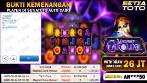 BUKTI KEMENANGAN 15 AGUSTUS 2025 DI GAME MADAME CAROLINE WD 26 JUTA