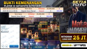 BUKTI KEMENANGAN 16 AGUSTUS 2025 DI GAME MAFIA MAYHEM WD 25 JUTA