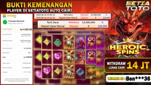 BUKTI KEMENANGAN 16 AGUSTUS 2025 DI GAME HEROIC SPINS WD 14 JUTA